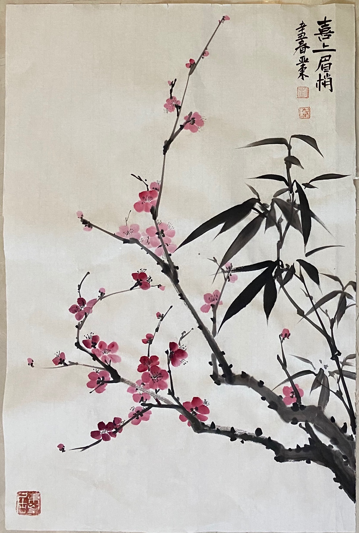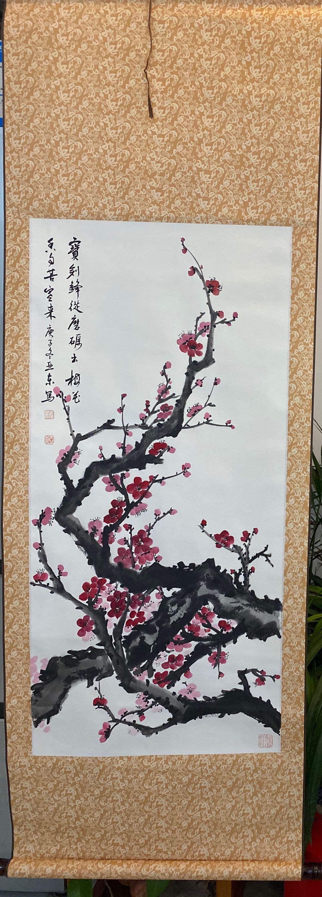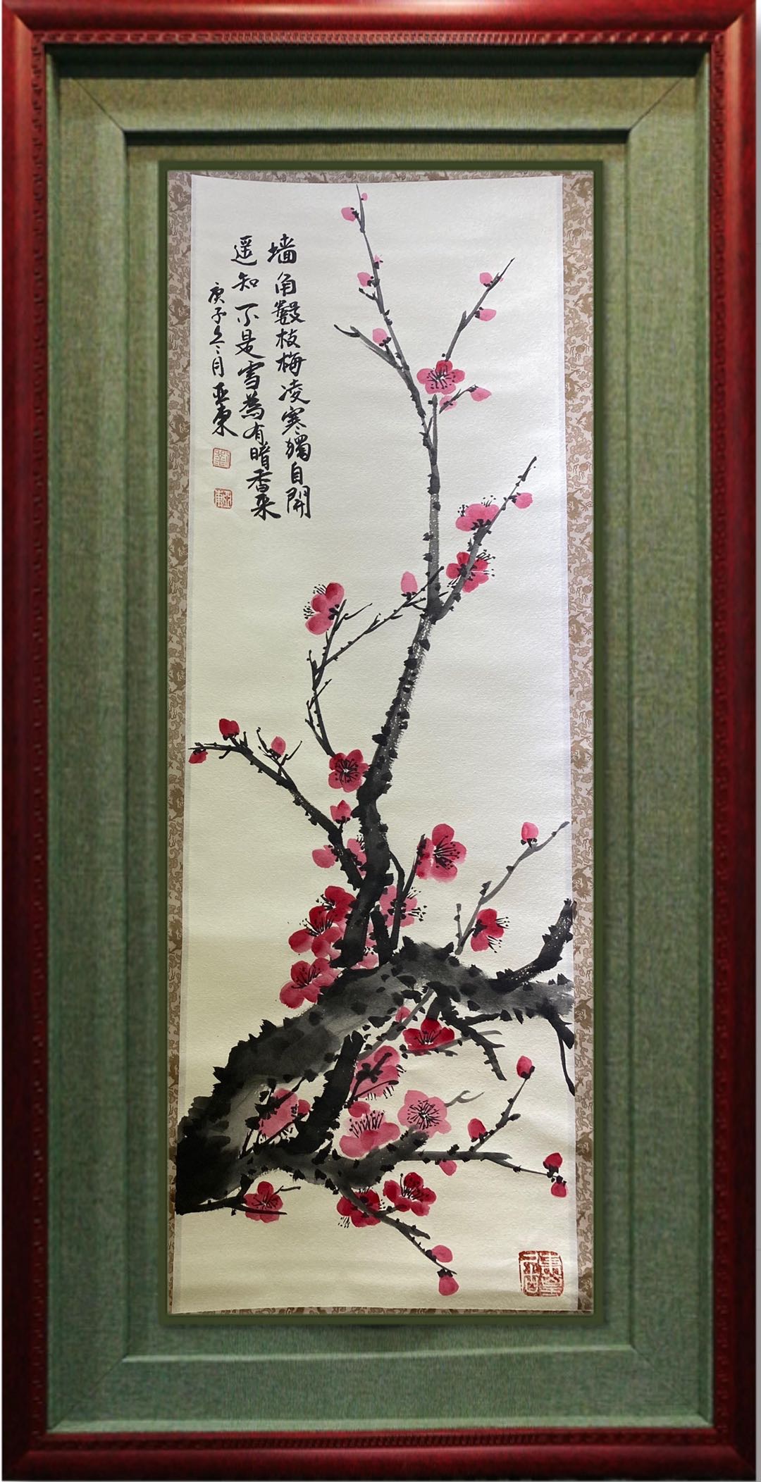 国家一级美术师 亚墨 红梅花开已装裱,内芯92×92