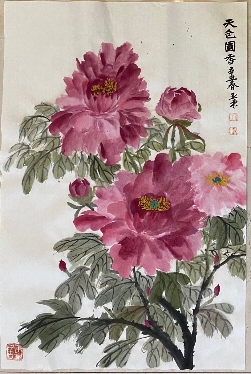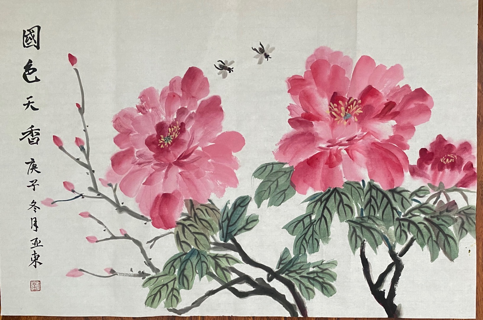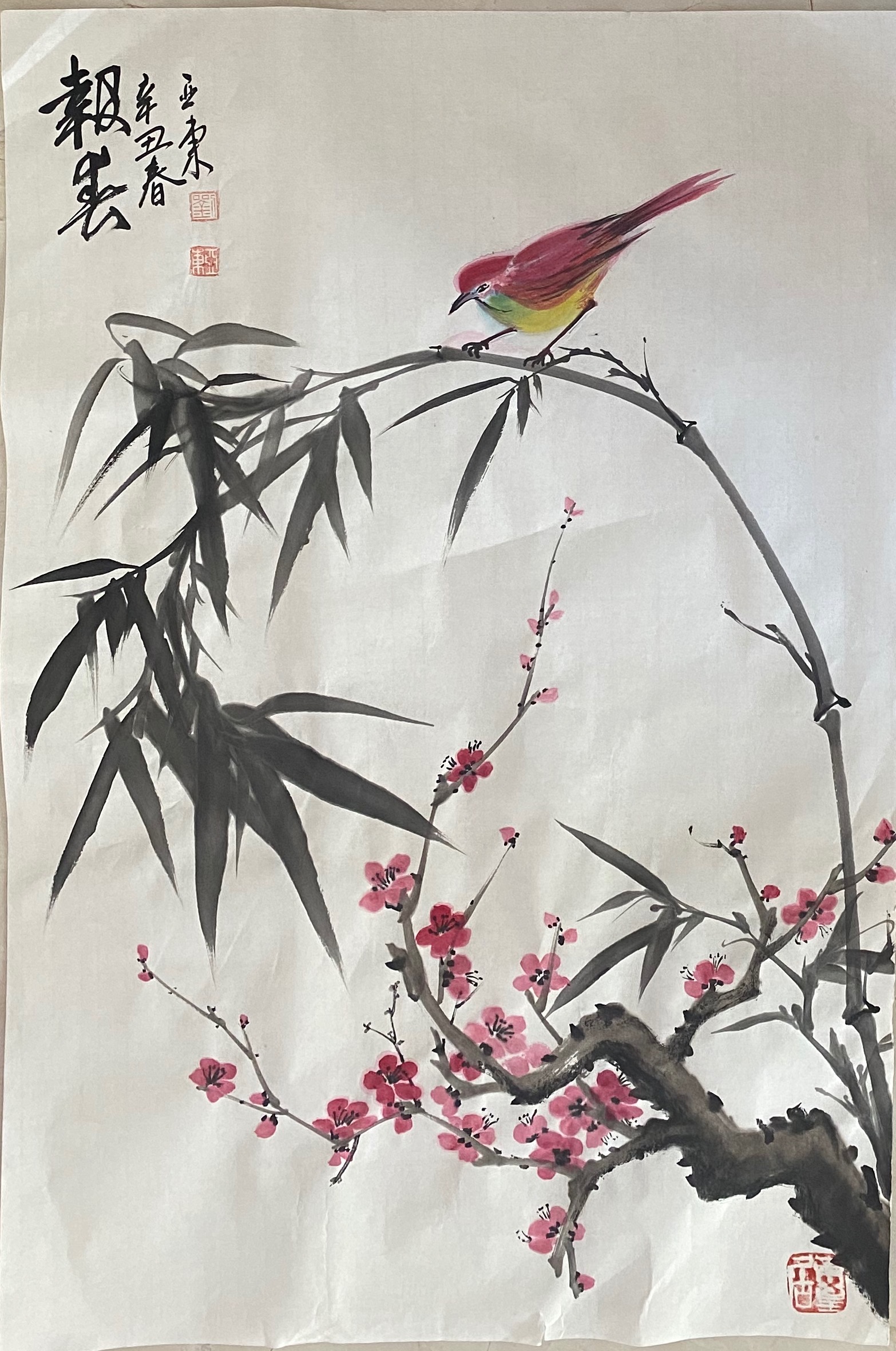 国家一级美术师 亚墨 红梅花开已装裱,内芯92×92